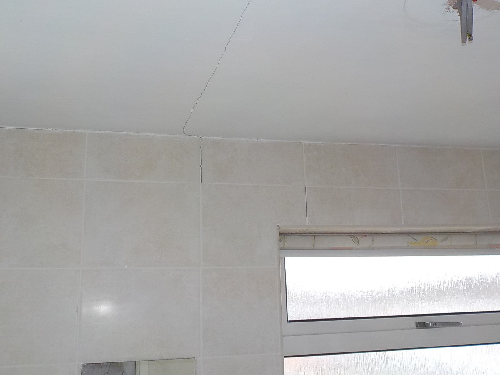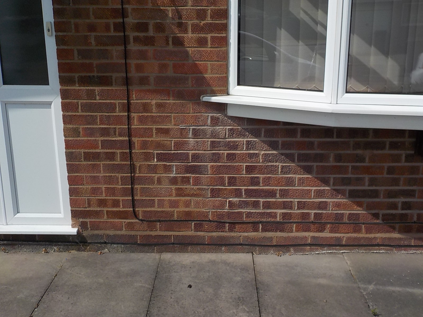 A shallow and thus weak section of brickwork has also snapped above the bathroom window opening.